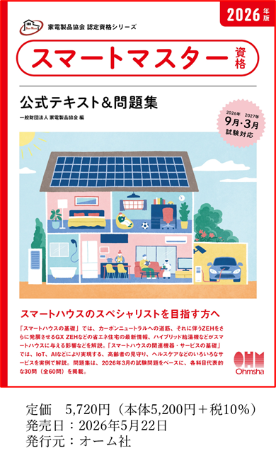 スマートハウスに関する最新の情報と知識を体系的に整理した『2026年版スマートマスター資格 公式テキスト&問題集』をオーム社から発刊し、5月22日より発売いたします。