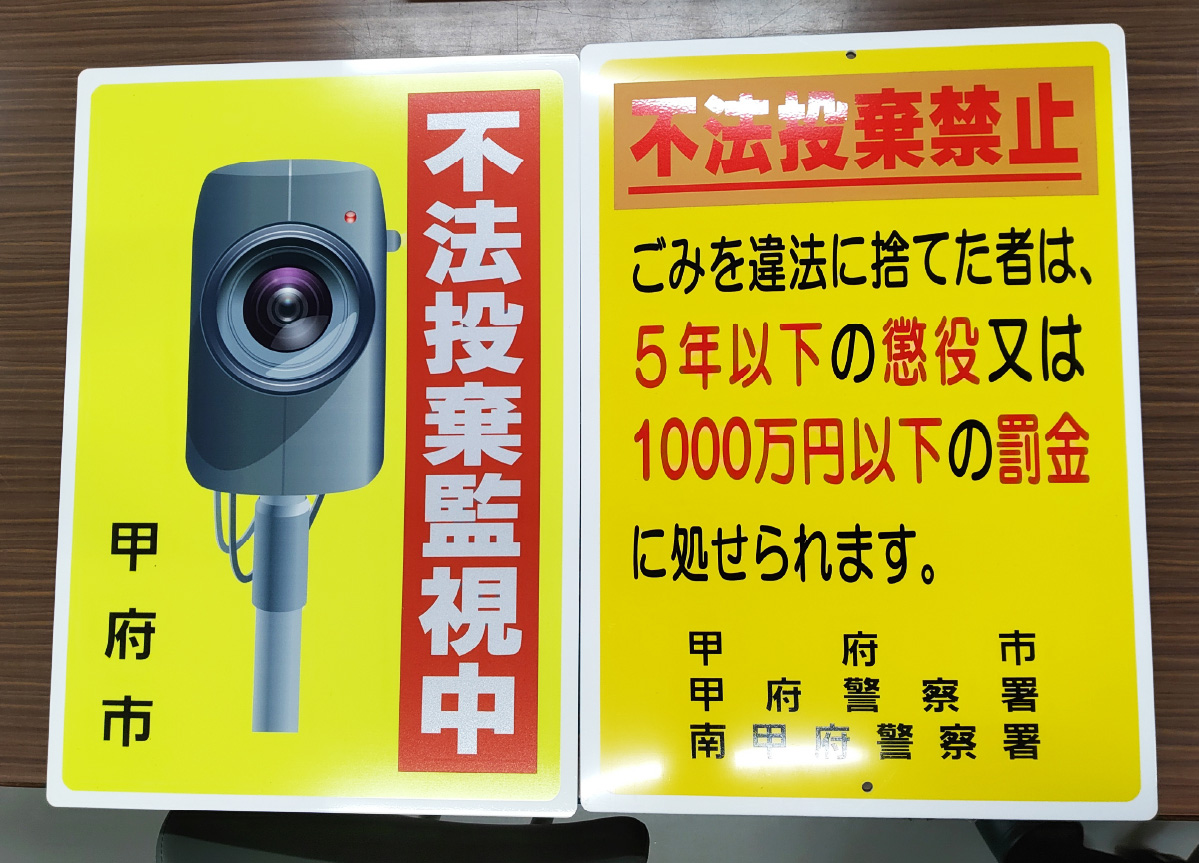 看板は、不法投棄の未然防止対策として、最もスタンダードな方法です。