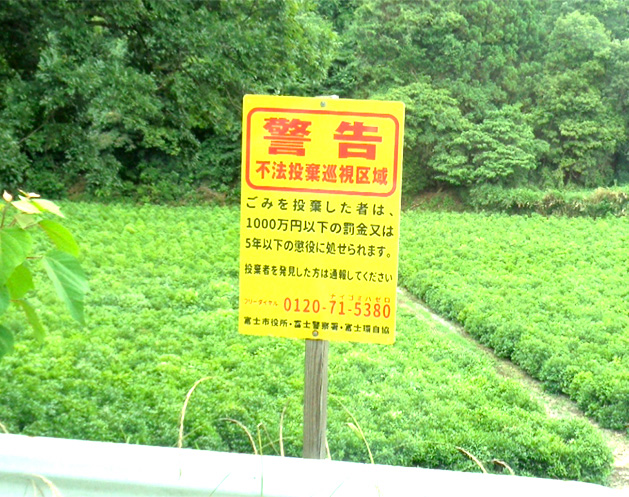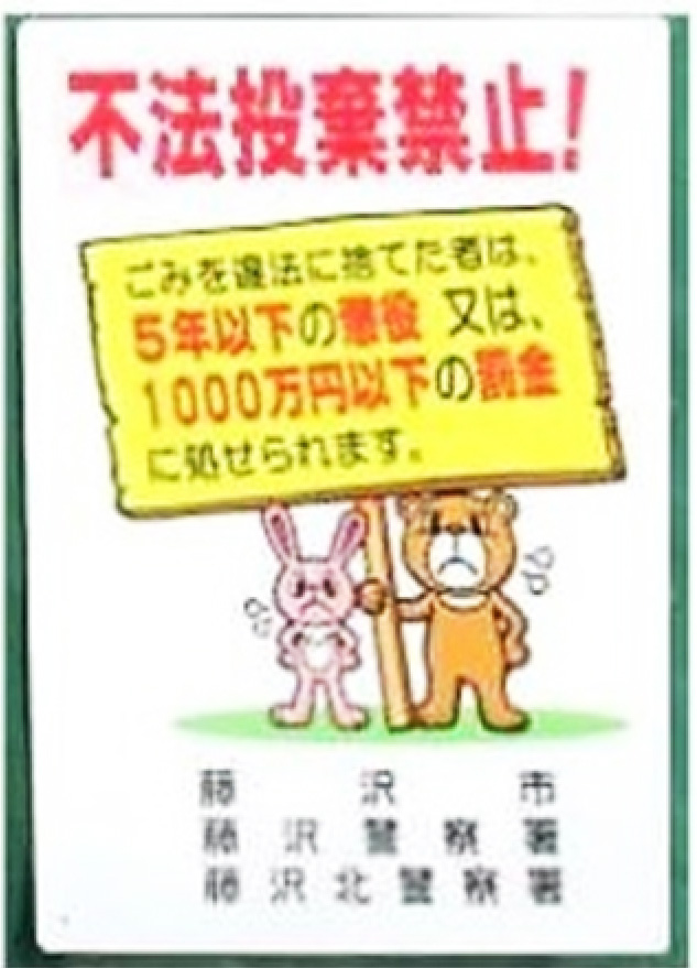 不法投棄に苦慮する地域住民(自治会)に対して、自治体より看板の貸し出しを行っています。 | ||