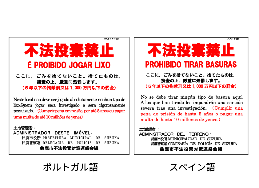 外国人による不法投棄対策として、外国語表記の看板を作成している自治体があります